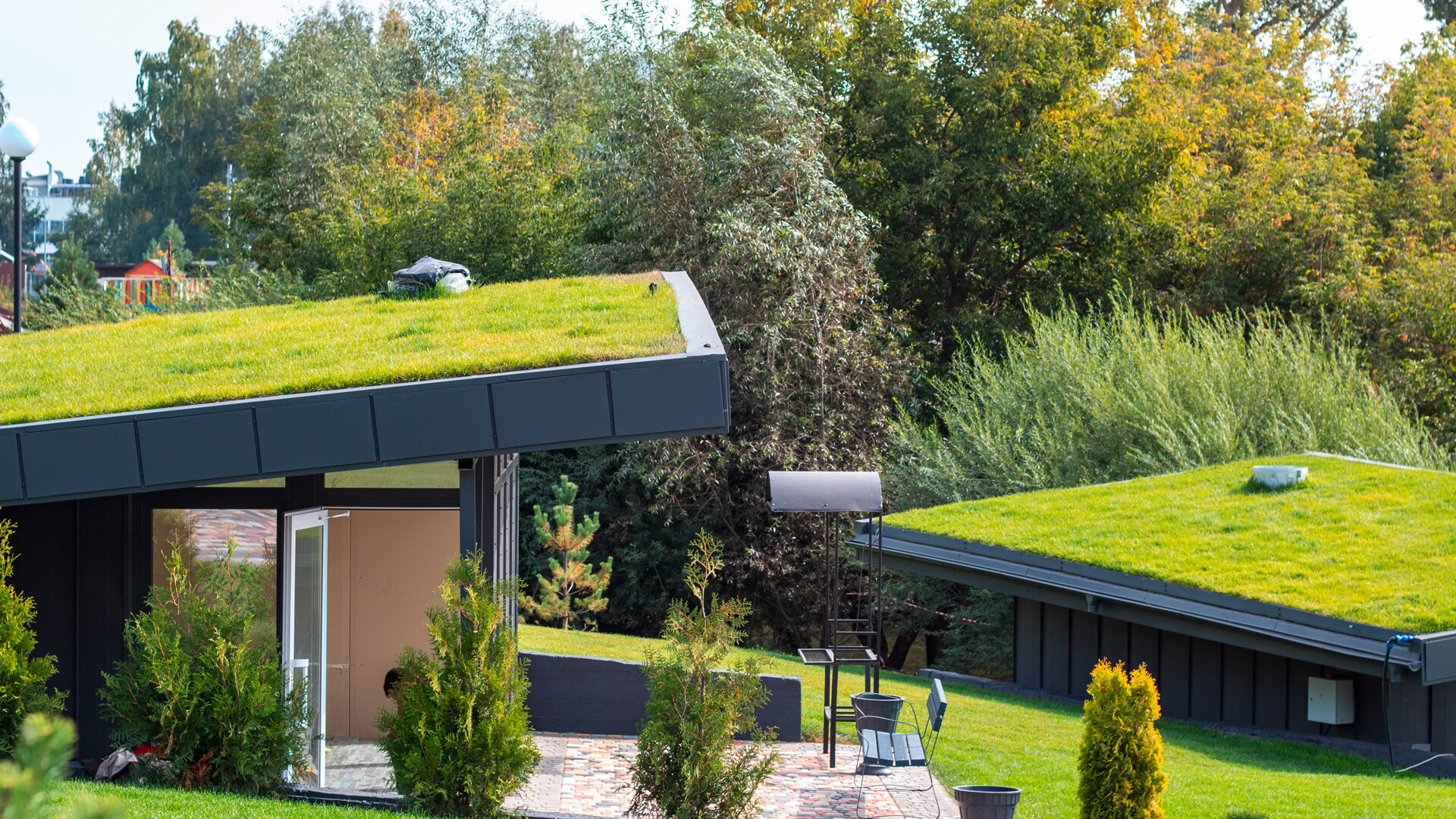 Eine Grünfläche speichert Regenwasser und gibt sie durch Verdunstung allmählich wieder ab: Dieser Vorgang entzieht der Umgebung Wärme. Und macht Ihre Gebäude insgesamt im Sommer kühler! So erreicht eine begrünte Dachfläche selbst im Hochsommer selten mehr als 35° C, bei Dächern mit Kiesschüttung sind es hingegen schnell 65° C. Damit erhöht ein begrüntes Dach die Lebensdauer seiner Abdichtung erheblich, weil Temperaturspitzen abgefangen werden.