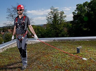 Sicherheit auf dem Dach ist kein Zufall: Wir beraten Sie dazu gerne und montieren fachgerecht die passende Sicherungslösung.