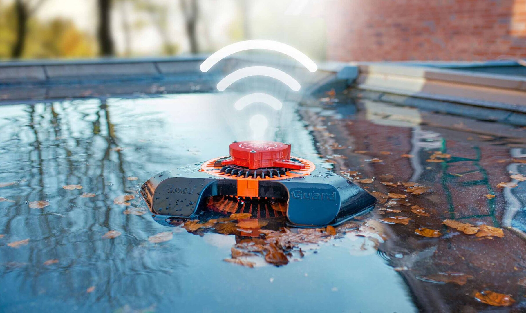 Das RoofGuard-System informiert selbsttätig per E-Mail, wenn Laub oder Hagel den Ablauf verstopfen und eine Wartung nötig ist: Dieses System, das ohne exterme Stromversorgung arbeitet, kann - ebenso wie das RoofGuard-System insgesamt - auch nachträglich installiert werden und gibt zusätzliche Sicherheit vor Problemen durch Wasser-Rückstau.